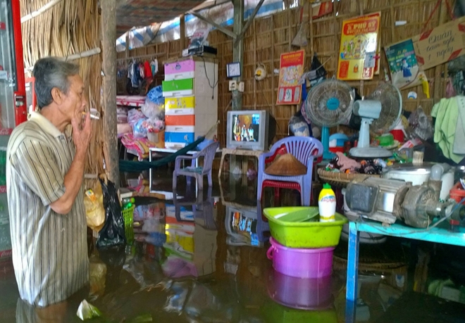 Cùng nỗi bức xúc trên, anh Huỳnh Ngọc Minh Tuấn, Chủ quán cà phê Làng Báo (đường Trần văn Hoài), buồn rầu: “Sáng sớm và chiều muộn là 2 thời điểm quán tôi đông khách nhất. Nhưng mấy ngày nay, tình hình triều cường dâng cao, khiến nước ngập cả tuyến đường, có khi tràn cả lên quán, khiến việc kinh doanh gặp khó khăn. Sinh hoạt của gia đình tôi và những hộ xung quanh gặp rất nhiều khó khăn”.