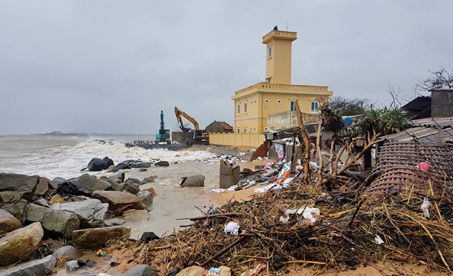 - Nhiều nhà dân ven biển phía Bắc TP Tuy Hòa bị triều cường đánh sập