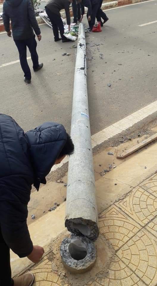 Khoảng 6h sáng ngày 1-1, trụ bê tông dùng để trang trí đèn hoa tại thị trấn Lạc Dương, đường vào KDL Langbiang, huyện Lạc Dương (Lâm Đồng) bất ngờ gãy rơi ra đường khiến người dân bức xúc, tố chất lượng trụ bê tông này “có vấn đề”.