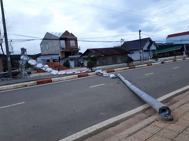 | Trụ bê tông gãy trên đường vào KDL Langbiang |