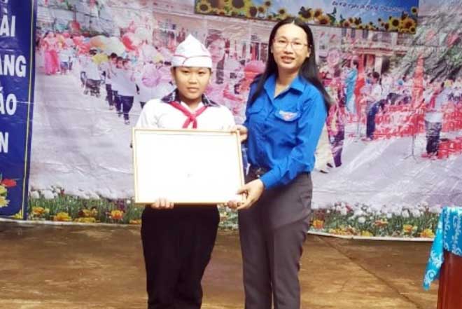 Dịp này, Tỉnh đoàn đã trao tặng Bằng khen của Tỉnh đoàn và quà cho em Nhân; trường Tiểu học Đa Kia B trao giấy khen và 500.000 đồng tiền mặt cho em Nhân.