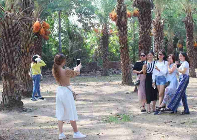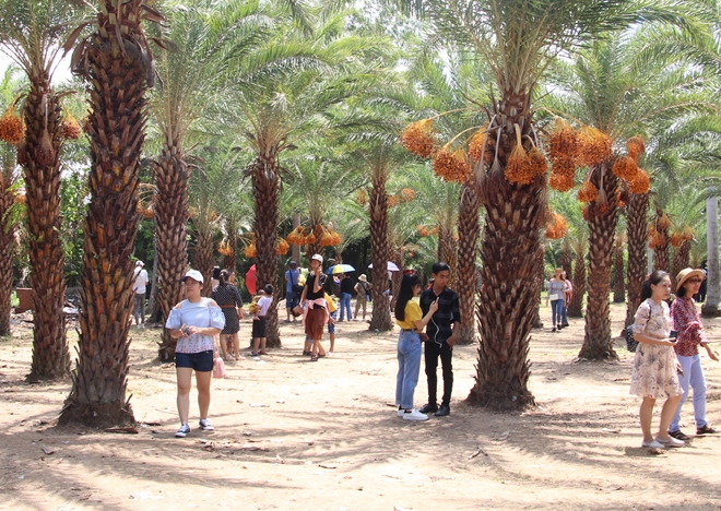 Mỗi ngày, khu vườn đón từ 400 – 500 khách, riêng những ngày cuối tuần lên đến khoảng 1.000 khách đến tham qua, chụp ảnh và nếm thử mùi vị của trái chà là.