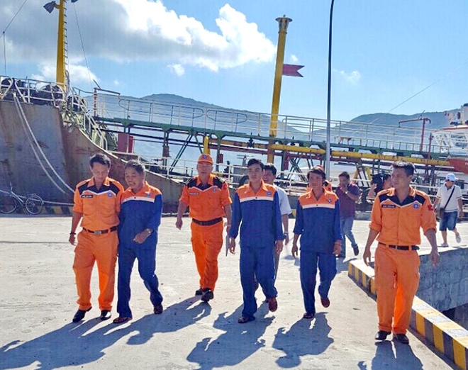 Sau một hải trình vượt sóng gió trên biên trong điều kiện thời tiết xấu, đến 8h20’ sáng 29-9, tàu chuyên dụng SAR-412 của Trung tâm phối hợp tìm kiếm cứu nạn hàng hải Việt Nam (MRCC) đã lai dắt tàu đánh cá BĐ-97172 TS cùng 3 ngư dân về đến cảng Quy Nhơn (Bình Định).