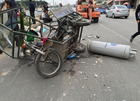Xe ba gác chở bình gas cũng bị hư hỏng nặng, toàn bộ phần khung gãy rời. Ba bình ga bị văng tứ tung, trong đó 1 bình ga bị văng xa khoảng 20m. Người lái xe ba gác đã được đưa đi cấp cứu tại Bệnh viện Việt Đức trong tình trạng chấn thương nặng.