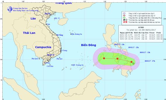 Trong 24 giờ tới, áp thấp nhiệt đới di chuyển theo hướng Tây Tây Bắc, mỗi giờ đi được khoảng 10-15 km. Đến 13 giờ ngày mai (9/1), vị trí tâm áp thấp nhiệt đới ở vào khoảng 10,2 độ Vĩ Bắc; 123,1 độ Kinh Đông, trên khu vực miền Nam Philippines với cường độ cấp 6 (40-50km/giờ), giật cấp 7-8.