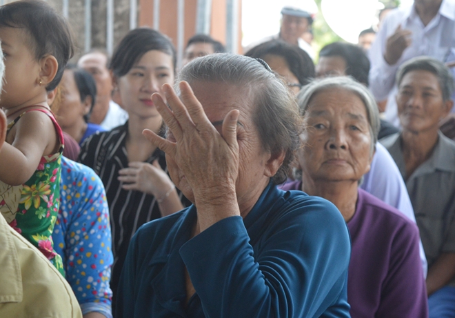 | Nhiều người không cầm được nước mắt khi nhớ lại người thân bị tử nạn trong bão Linda 20 năm trước. |