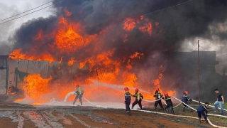 Cháy lớn thiêu rụi kho vật tư nông nghiệp