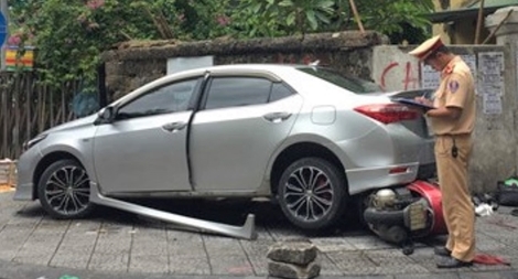 Lùi xe để quay đầu, ô tô con lật ngửa xuống rạch Bà Rằng