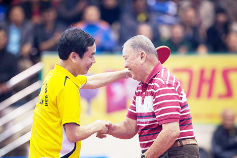 | Huyền thoại bóng bàn Việt Nam Lê Văn Tiết giành Huy chương Bạc nội dung lãnh đạo hạng A. Sự có mặt của ông Tiết khiến nhiều người yêu bóng bàn Thủ đô được "mục sở thị" huyền thoại của làng bóng bàn Việt Nam trên sân bóng. Trong buổi chung kết, ông Tiết đã có trận đấu giao lưu với Thiếu tướng Phạm Văn Miên, Tổng biên tập Báo CAND, Phó Chủ tịch liên đoàn bóng bàn Việt Nam, Trưởng ban tổ chức giải. (Ảnh: Hải Kều). |