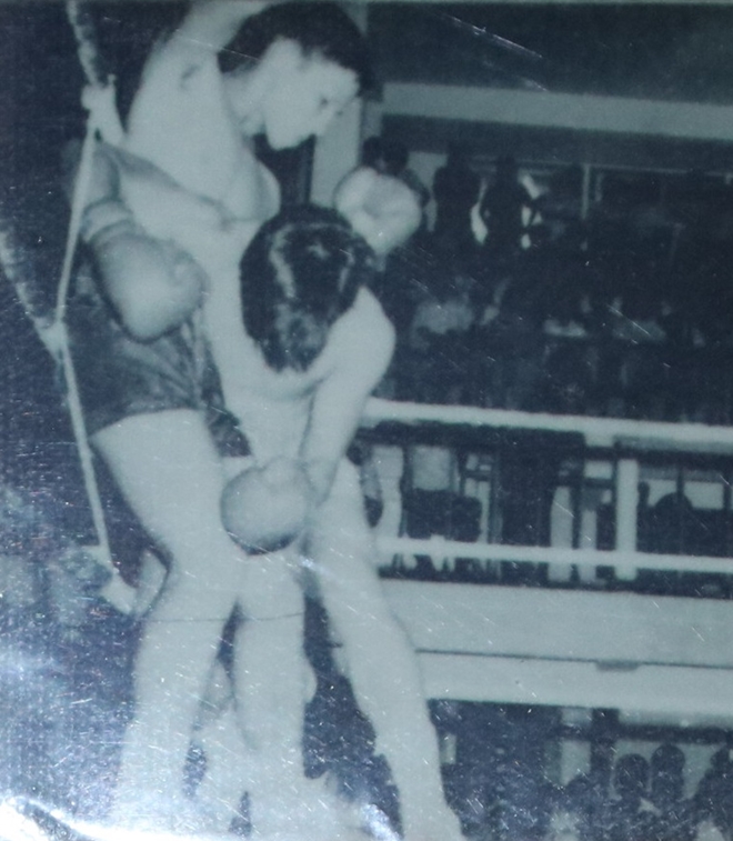| Trận so tài giữa võ sĩ Phi Hùng (bên trái) với võ sĩ Trần Cường năm 1974. |