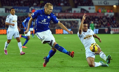 | Leicester (trái) đang dẫn đầu BXH Premier League. |