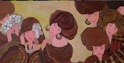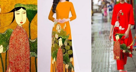 | Tranh của họa sĩ Bùi Trọng Dư bị 1 công ty đạo nhái đưa lên các mẫu áo dài. |