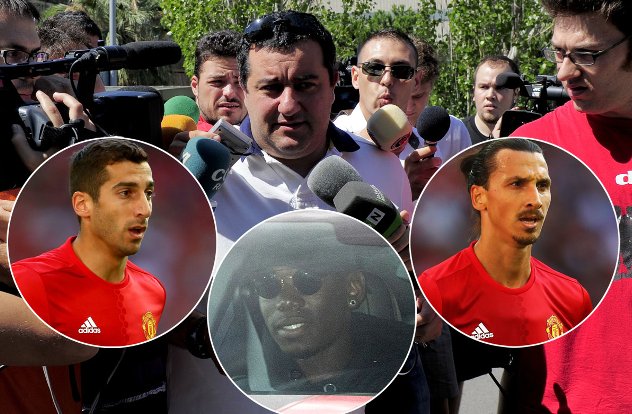 | 3 ngôi sao cập bến Old Trafford hè này đều là thân chủ của Raiola. Từ trái qua: Mkhitaryan, Pogba, Ibrahimovic. |