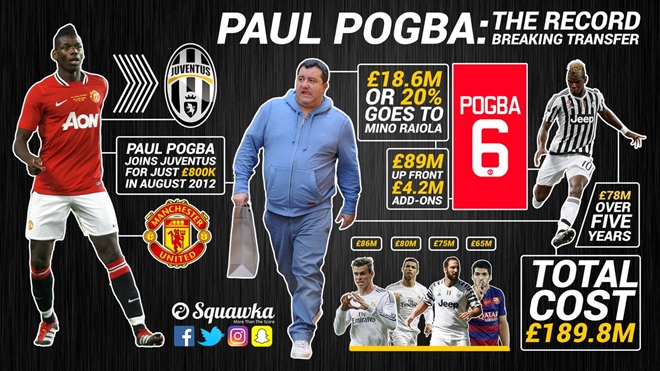 | Pogba trở thành cầu thủ đắt giá nhất hành tinh nhờ tài nghệ của Raiola |