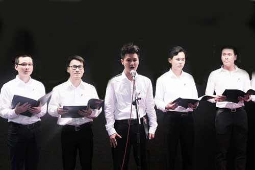 | Tốp ca nam hát bài “Tổ quốc gọi tên mình” Bìa sách thơ “Tổ quốc gọi tên mình”. |