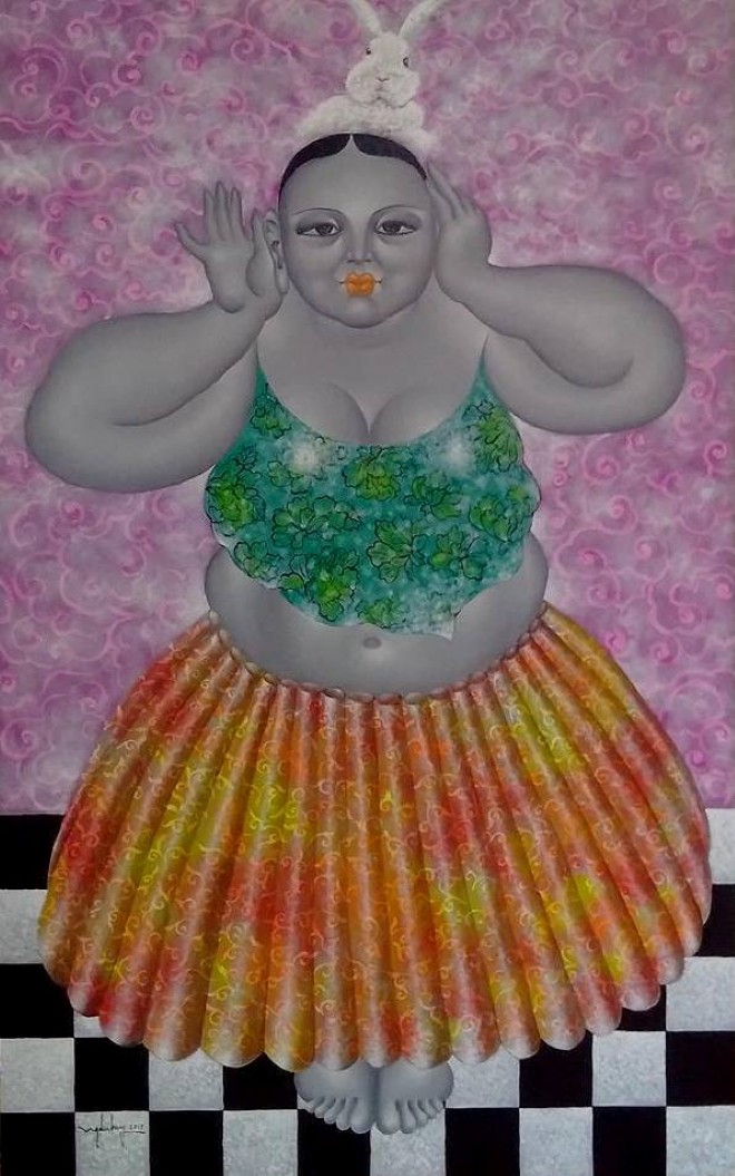 1. Hà Nội đang trong những ngày lạnh giá, nhưng bước vào phòng tranh của vợ chồng họa sĩ Đức Huy - Thu An trên tầng 4 của Đông A gallery, tôi có cảm giác mới lạ. Vẽ đàn bà, một đề tài quá quen thuộc và khó vượt qua được những “cây đa cây đề” lừng lững trong lịch sử mỹ thuật.