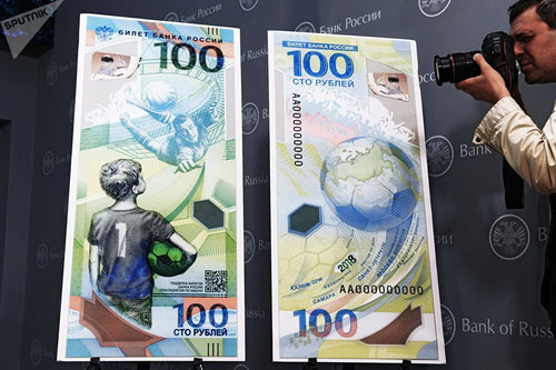 Nhân sự kiện đặc biệt này - lần đầu tiên World Cup diễn ra tại xứ sở bạch dương, Ngân hàng Trung ương Nga đã phát hành loại tiền giấy mới mệnh giá 100 rub (20 triệu tờ), in hình 1 cậu bé tay ôm quả bóng đang ngắm nhìn thủ môn huyền thoại của Nga Lev Yashin.