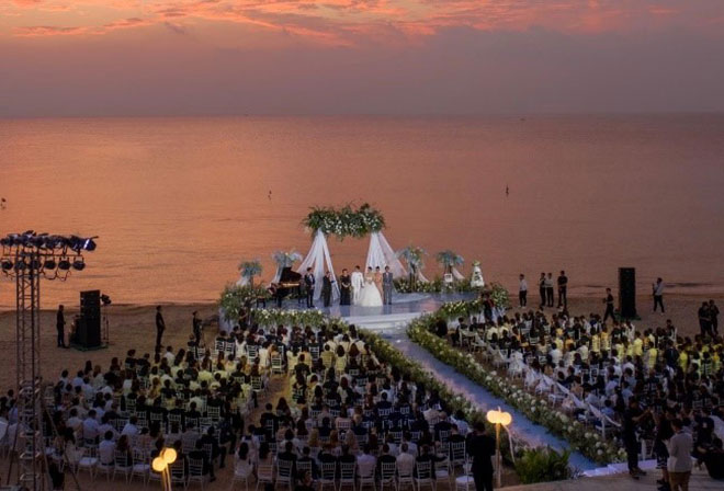 Gần 2.000 tấn cát được gấp rút vận chuyển, san phẳng để đảm bảo cho “Lễ đường” độc nhất vô nhị trên “bãi biển ngắm hoàng hôn đẹp nhất Việt Nam” được hoàn hảo nhất.