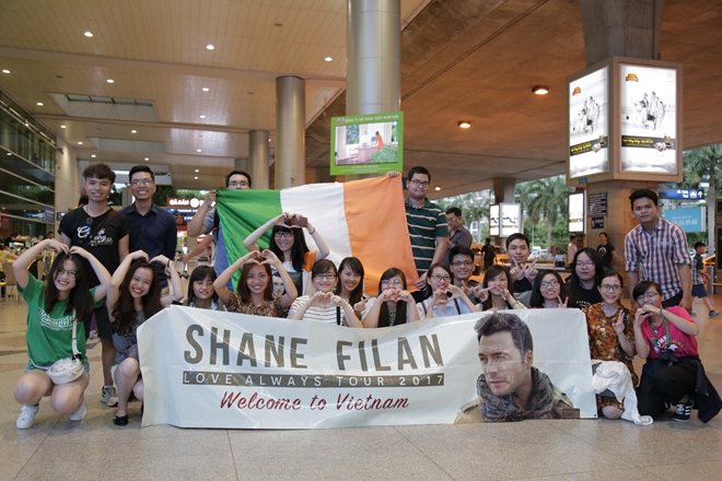 Ngay khi đặt chân xuống sân bay Tân Sơn Nhất vào tối ngày 15-7 để chuẩn bị cho đêm nhạc vào tối ngày 16-7, Shane Filan - cựu thành viên của Westlife rạng ngời bước ra trong tiếng hân hoan reo mừng của fan hâm mộ Việt Nam.