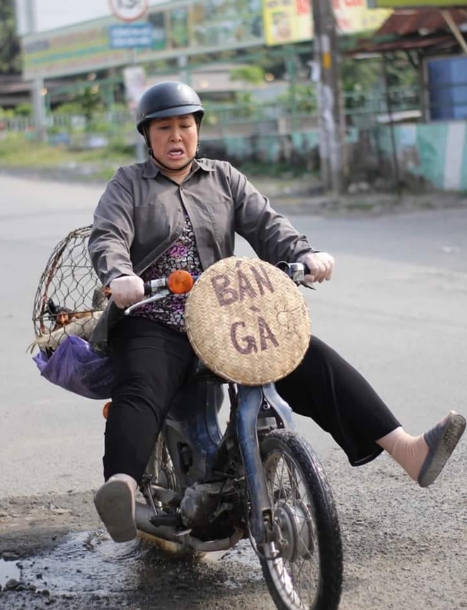 | NSND Hồng Vân vào vai bà buôn gà trong "Đại kê chạy đi" |
