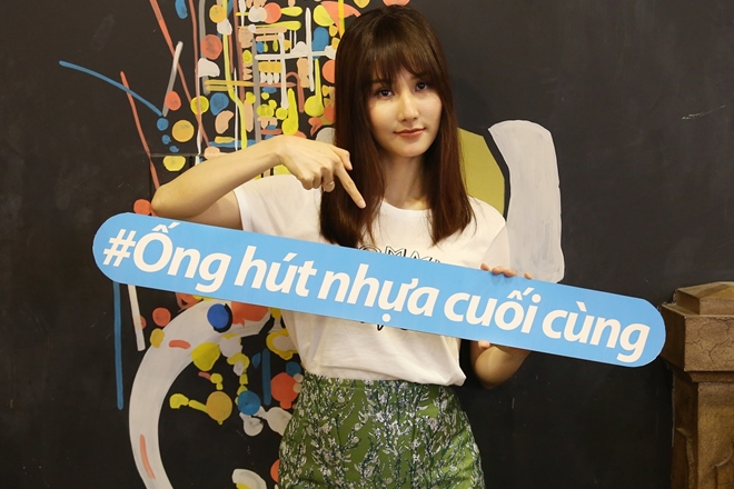 | Diễm My với thông điệp hạn chế sử dụng ống hút nhựa |