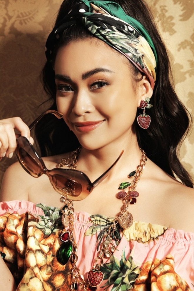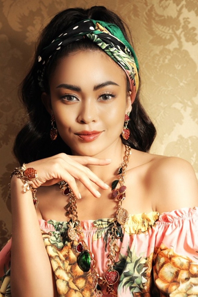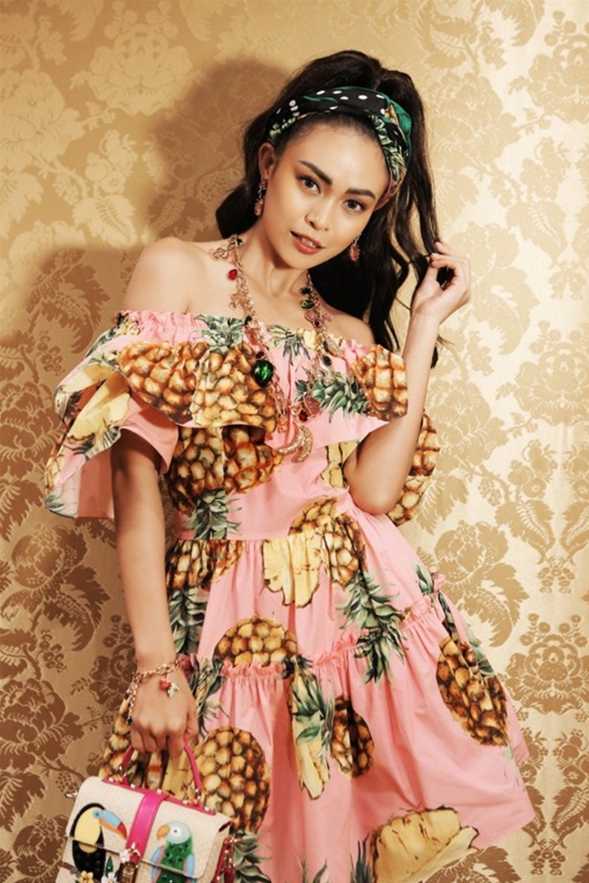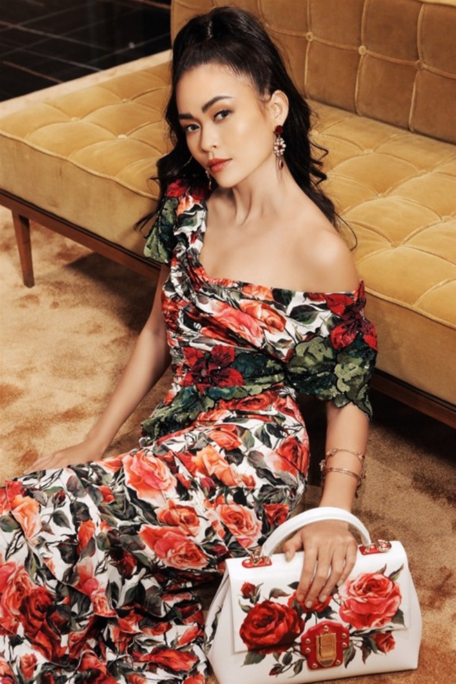 Trong trang phục Xuân Hè 2017 của Dolce & Gabbana, Mâu Thủy xuất hiện đầy ấn tượng, quyến rũ.