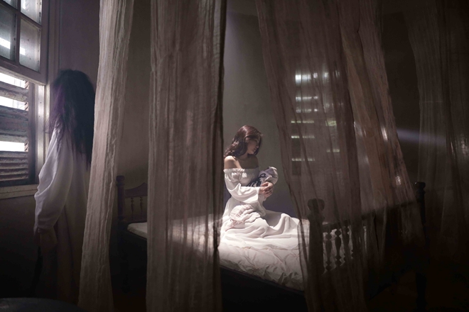 | Thời gian quay phim diễn ra vào nửa đêm lúc thời tiết Đà Lạt xuống rất thấp, bối cảnh lại là căn nhà hoang với không ít câu chuyện ma quái. |