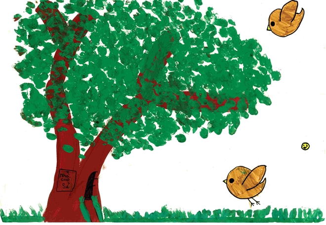 | Một trong số các tranh minh họa do bé Minh Khuê thực hiện cho tập thơ của mẹ |