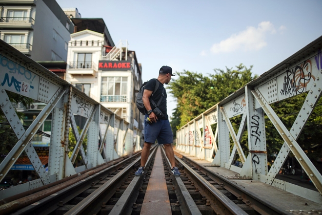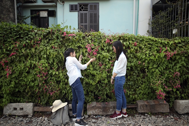 | Hào hứng khi đến với phố đường tàu, bạn Hoàng Huy (Hà Nội) chia sẻ lần đầu tiên biết tới đoạn đường ray cuối phố Phùng Hưng khi hình ảnh được đăng tải trên một Fanpage về du lịch. Dù chỉ dài khoảng 500 mét nhưng khung bên ngoài thực khiến mọi người say đắm ngay khi đến nơi. Hà Nội đang vào thu, mùa đẹp nhất trong năm nên Huy muốn ghi lại cho mình những bức hình kỷ niệm nơi phố đường tàu. |