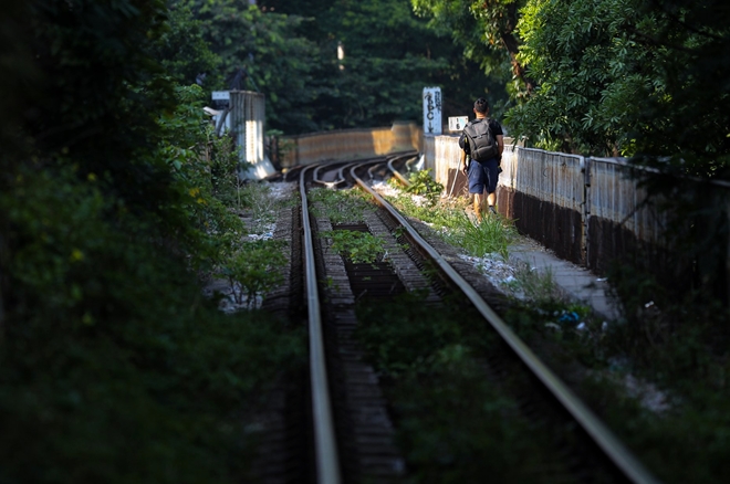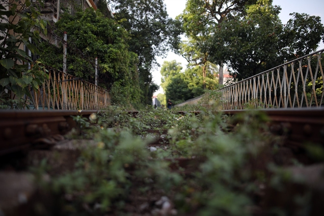 Đoạn đường tàu cuối phố Phùng Hưng (quận Hoàn Kiếm) thời gian gần đây đang là góc "sống ảo" được giới trẻ Hà thành săn lùng. Một không gian xanh mướt mắt giữa lòng Hà Nội.