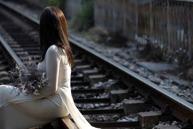 | Thiếu nữ Hà thành dịu dàng bên tà áo dài thả dáng nơi phố đường tàu. |