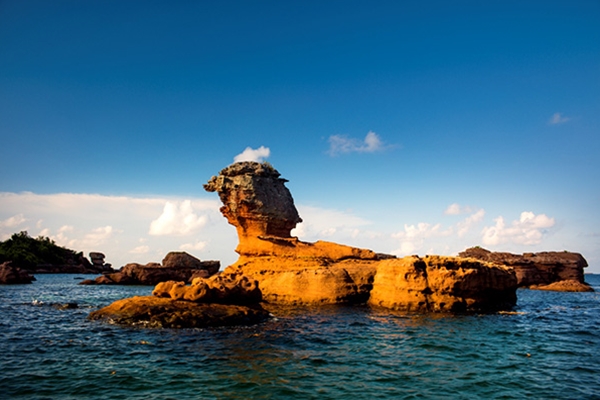 Đặc biệt, cạnh bãi Khem, du khách có thể ghé thăm Mũi Ông Đội với địa hình độc đáo hai mặt giáp biển. Ở vị trí hiếm có trên thế giới, Mũi Ông Đội là nơi duy nhất du khách có thể ngắm mặt trời mọc và lặn ở cùng một vị trí.