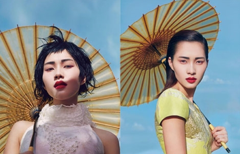 Ở một khía cạnh khác, vẻ đẹp thuần khiết vốn gắn liền với hoa hậu Đặng Thu Thảo được nhiếp ảnh gia Jumbo Tsui bắt trọn qua góc nhìn dịu dàng, thanh lịch. Mái tóc suông mượt được chải nếp gọn gàng kết hợp cùng đôi môi hồng tựa như cánh hoa đào. Ngoài ra, làn da trắng sứ không tì vết cùng điểm nhấn đường kẻ viền mắt được biến tấu theo phong cách hình khối thể hiện sự giao thoa hài hoà giữa truyền thống và đương đại.