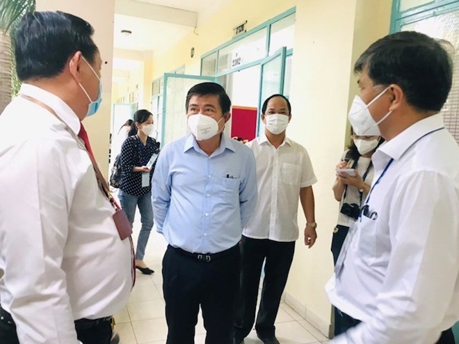 | Chủ tịch UBND TP Hồ Chí Minh đã trực tiếp kiểm tra công tác chống dịch tại điểm thi THPT Lương Thế Vinh |