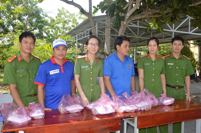 | Đoàn Thanh niên Công an huyện Mỹ Tú, cùng Thanh niên tình nguyện phát cơm miễn phí cho TS xa nhà. |