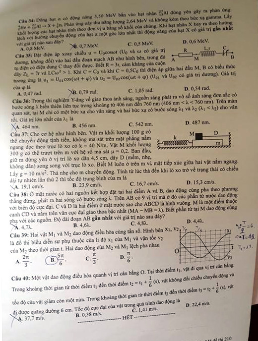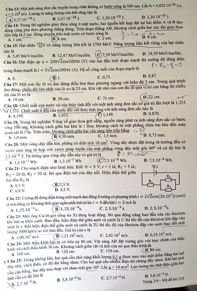 CAND Online xin giới thiệu Đề Lý - Kỳ thi tốt nghiệp THPT Quốc gia năm 2018