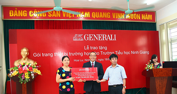 Sáng 18/9, Công ty bảo hiểm nhân thọ Generali Việt Nam trao tặng Trường tiểu học Ninh Giang, huyện Hoa Lư, tỉnh Ninh Bình gói thiết bị trường học trị giá gần 750 triệu đồng.