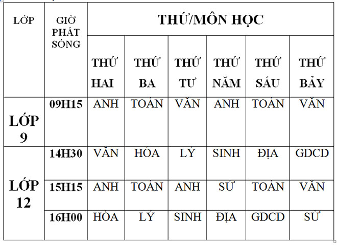 Lịch phát sóng tuần từ 9/3/2020 đến 14/3/2020 Chương trình học trên truyền hình sẽ được phát sóng trên kênh 1 – Đài Phát thanh và Truyền hình Hà Nội.