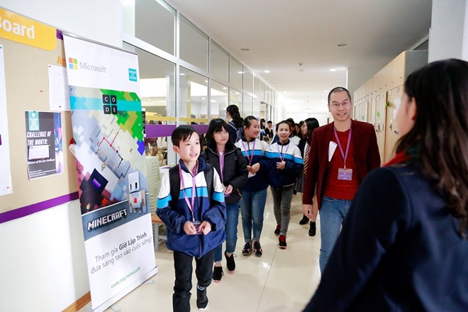 Các em học sinh từ Hòa Bình đã có cơ hội mở mang tầm mắt khi được tham quan cơ sở vật chất tân tiến, hiện đại của ngôi trường Olympia, được tham gia tiết học lập trình, tiết học STEM.