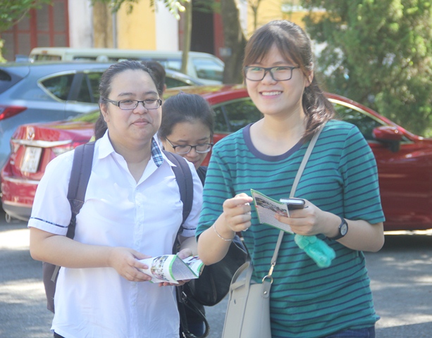 Ghi nhận tại điểm thi trường ĐH Sư phạm Huế, trong thời gian các thí sinh làm bài thi môn Toán, phía ngoài cổng trường tuyến đường Lê Lợi có hàng trăm phụ huynh đứng, ngồi với khuôn mặt lo âu để chờ các thí sinh hoàn thành môn thi.