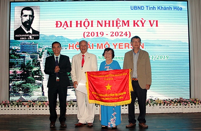 | Hội ái mộ A.Yersin tỉnh Khánh Hòa đón nhận cờ thi đua của UBND tỉnh Khánh Hòa. Ảnh : CTV |