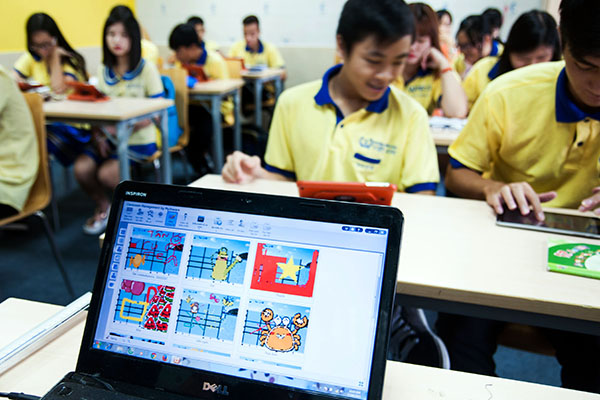 Đây là ngôi trường đầu tiên tại TP HCM quyết định ứng dụng đồng bộ SGK điện tử Classbook cũng như biến các lớp học truyền thống thành mô hình phòng học tương tác, giúp giờ học trở nên sinh động và thú vị hơn. Với công cụ học tập mới mẻ này, giáo viên và học sinh nhà trường bước vào năm học với những thay đổi đáng kể trong cách dạy và học trên lớp.