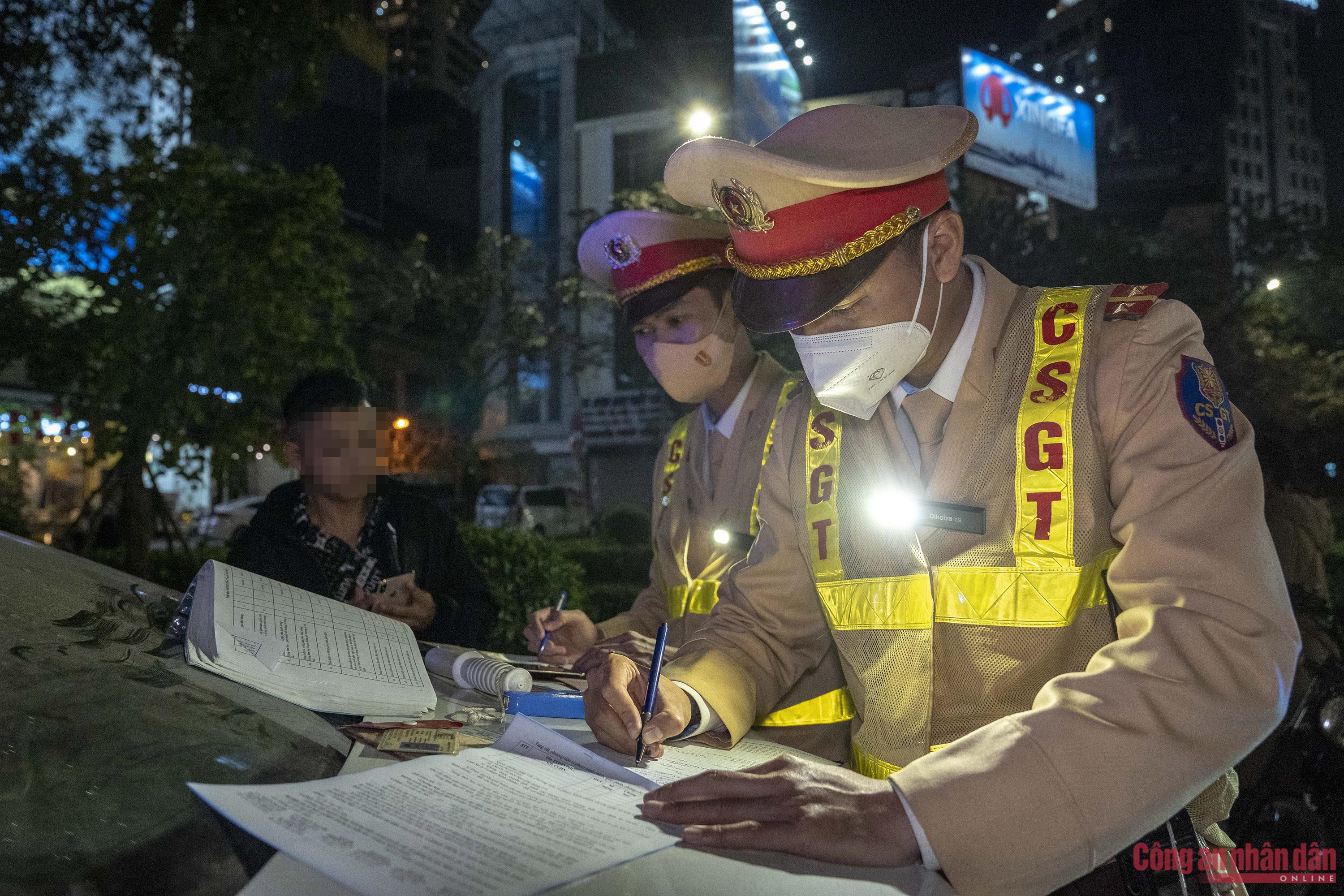 Hơn 22h đêm 28/1 tại ngã tư Đại lộ Thăng Long – Phạm Hùng, mật độ phương tiện vẫn rất đông, chủ yếu là ô tô khách và xe tải. Tổ công tác CSGT dừng kiểm tra đối với xe tải mang BKS: 20G-003.XX do tài xế Lê Quang H. (quê Thái Nguyên) điều khiển lắp thêm 2 còi hơi và đèn siêu sáng.Tổ CSGT đã lập biên bản vi phạm hành chính đối với tài xế H. về hai lỗi trên. Riêng lỗi lắp thêm đèn chiếu sáng phía trước hoặc phía sau xe, tài xế sẽ bị phạt 1,5 triệu đồng và trừ 2 điểm giấy phép lái xe. Đối với lỗi sử dụng còi trong thời gian từ 22h đến 5h hôm sau tại khu đông dân cư, khu vực cơ sở khám bệnh, chữa bệnh, tài xế sẽ bị phạt 900 nghìn đồng.Cũng vi phạm lỗi tương tự, tài xế Hà Thái D. (quê Thanh Hóa) trình bày do thường di chuyển trên các tuyến đường đèo, hay có sương mù và ít đi trong đô thị lớn nên đã lắp thêm đèn siêu sáng để quan sát rõ hơn. “Lâu rồi tôi mới lái ô tô ra Hà Nội nên quên tắt đèn siêu sáng. Tôi sẽ rút kinh nghiệm để không ảnh hưởng đến những người tham gia giao thông khác”, tài xế D. nói.CSGT kiểm tra xe tải vi phạm.Quá trình kiểm tra, xử lý đều được tổ CSGT ghi lại bằng camera chuyên dụng.Làm việc với CSGT, các tài xế đều thừa nhận việc bật đèn trợ sáng trong khu đông dân cư sẽ gây chói mắt người tham gia giao thông.Chứng kiến tổ công tác CSGT xử lý xe tải độ chế đèn siêu sáng, còi hơi, nhiều người dân đi đường bày tỏ sự ủng hộ với việc lực lượng chức năng xử lý mạnh tay đối với vi phạm này. Anh Nguyễn Quyết (trú tại phường Từ Liêm, Hà Nội) cho biết, đi đường buổi tối tại nhiều tuyến có mật độ xe đông như Đại lộ Thăng Long, Phạm Hùng... mà không may gặp phải những "hung thần" độ chế đèn siêu sáng khiến không chỉ anh mà còn nhiều người tham gia giao thông khác bị loá mắt nếu không muốn nói là "mù tạm thời" dẫn đến việc quan sát khó khăn, nguy cơ xảy ra tai nạn rất cao. Anh ủng hộ việc xử phạt nghiêm hành vi này để đảm bảo an toàn cho người tham gia giao thông.Thiếu tá Phạm Văn Sơn, cán bộ Đội CSGT số 6, cho biết, Thời gian tới, đơn vị sẽ tăng cường xử lý hành vi lắp thêm còi hơi, đèn siêu sáng gây mất an toàn giao thông. Đồng thời, lực lượng chức năng sẽ sử dụng hệ thống camera AI để phát hiện, xử lý các hành vi vi phạm này.