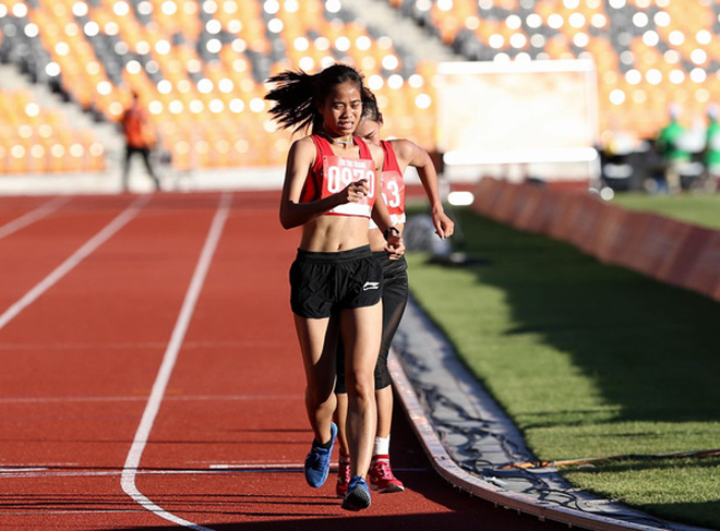 | Phạm Thị Thu Trang trên đường đi bộ ở SEA Games 30 vào sáng 8-12. |
