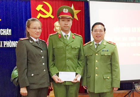 Chiều ngày 19/1, được sự ủy quyền của Ban biên tập, Đại úy Cao Thị Hồng, Phó trưởng ban Pháp luật và Bạn đọc Báo CAND đã đến Cảnh sát PCCC Hải Phòng thăm hỏi, động viên và trao tặng phần quà cho hai CBCS gồm Thượng sỹ Đào Ngọc Quân, Phòng Cảnh sát PCCC số 1 và Binh nhất Nguyễn Huy Hoàng, Phòng Cảnh sát PCCC số 2 đã bị thương vì bất chấp hiểm nguy lao băng qua ngọn lửa cứu 5 người dân gặp nạn trong vụ cháy nhà số 74/214 Tôn Đức Thắng, quận Lê Chân, TP Hải Phòng ngày 17/1/2014.
