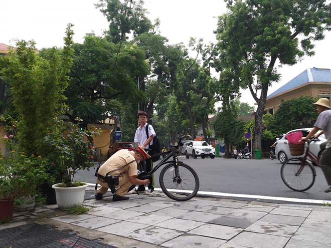 Cộng đồng mạng hào hứng với hình ảnh CSGT sửa xe đạp cho cháu bé
