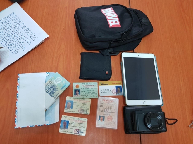 Tiến tới kiểm tra, hai đồng chí CSGT phát hiện trong ba lô có khối tài sản lớn, gồm một cọc tiền mặt 50 triệu đồng, một máy tính bảng, một máy ảnh mini cùng nhiều giấy tờ tùy thân mang tên Lê Anh Tuấn, trú tại Bồ Đề, Long Biên.