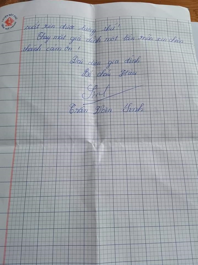 | Thư cảm ơn người nhà của gia đình anh Hiệu |