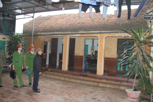 | Thượng úy Vũ Quỳnh Anh - Phó Trưởng Công an xã Trung Hưng kiểm tra tại các cơ sở kinh doanh có điều kiện trên địa bàn. |
