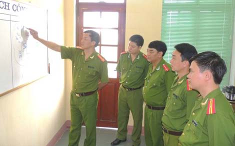 | Đại tá Nguyễn Minh Tiến và đồng đội trao đổi kế hoạch phá án. |